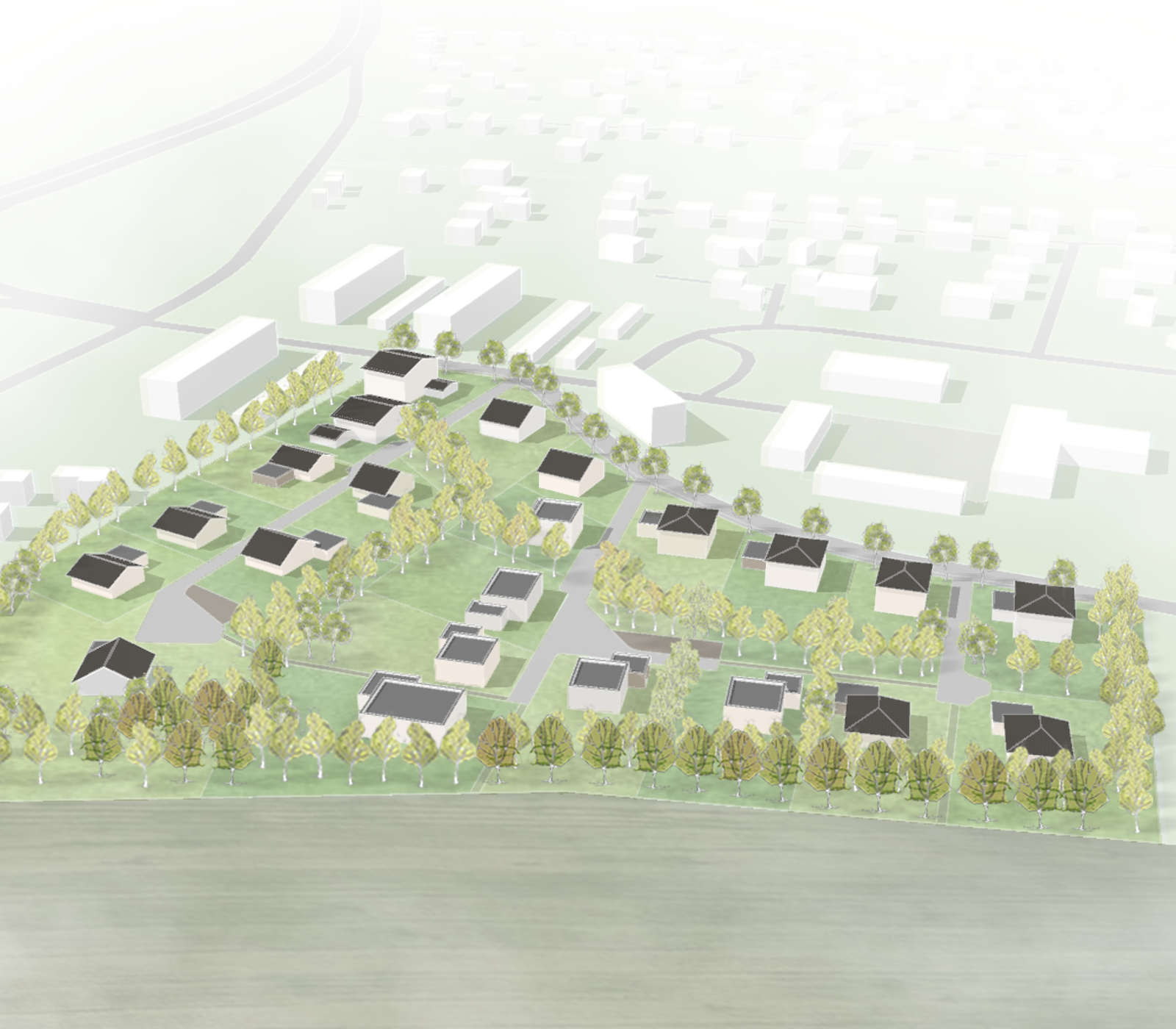 - Variante 2: Erschließung mittels dreier Stichstraßen und ‚Campus‘-Bildung